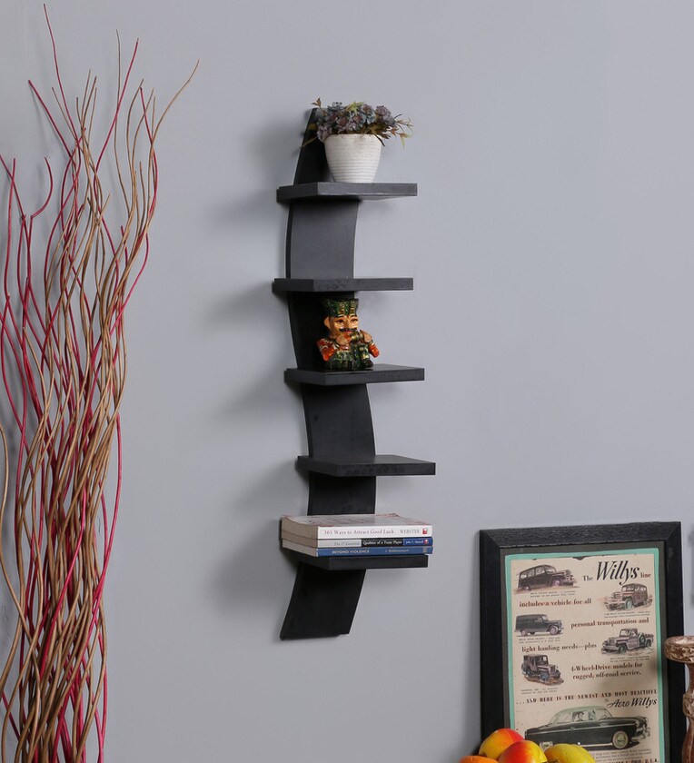 Engineered Wood Snack Shape Floating Wall Shelf In Walnut Colour