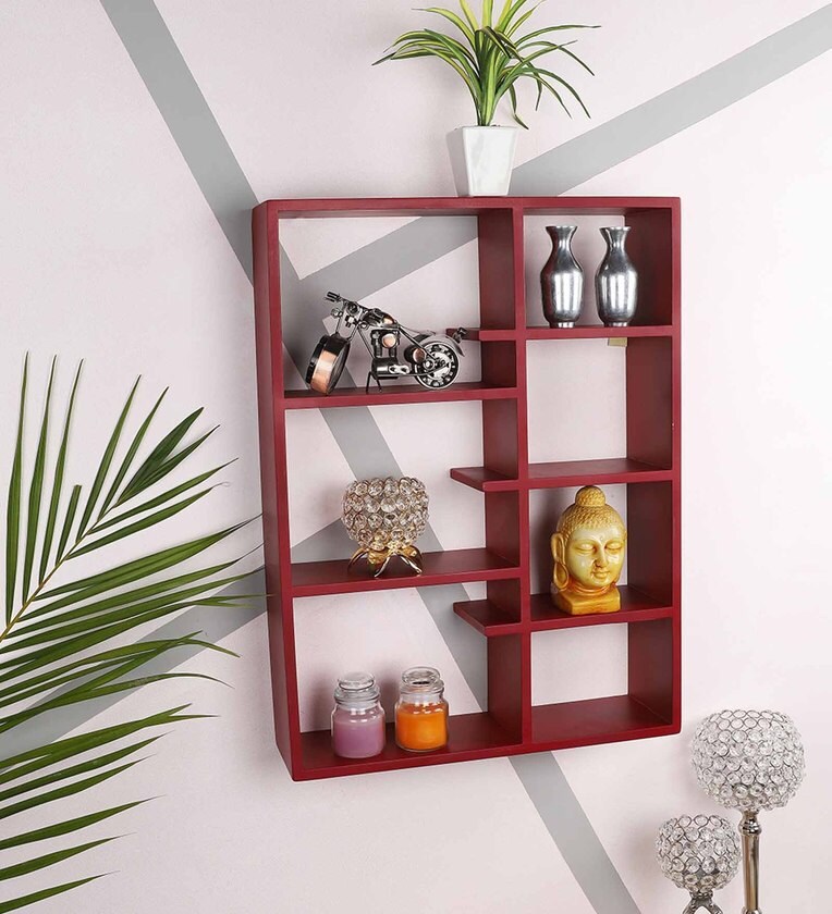 Engineered Wood Wall Shelf in Red Colour