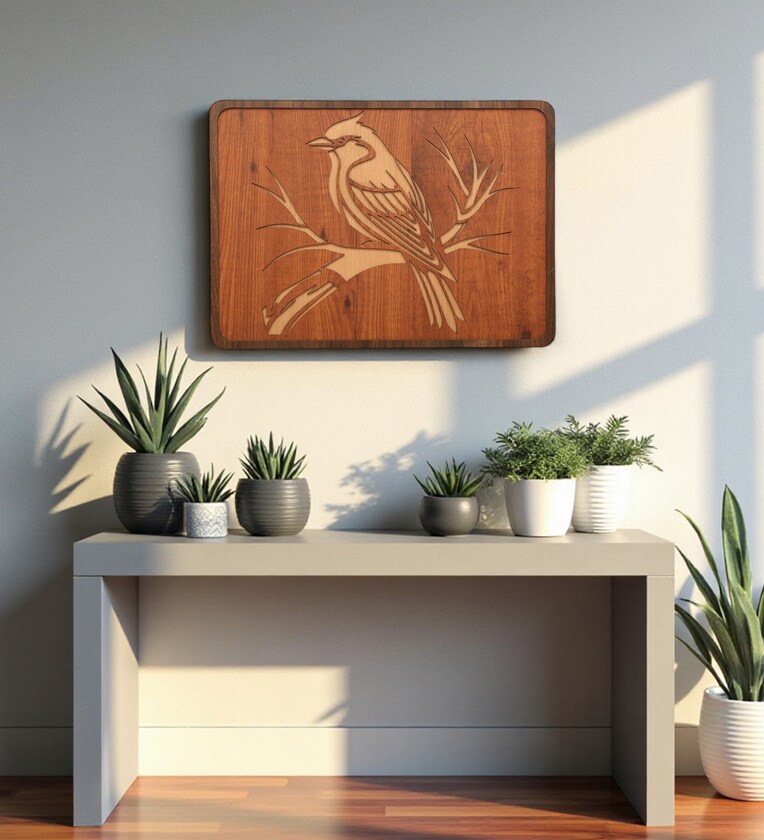 Engineering Wood Laser Cut Birds Design Wall Art in Black & Brown Finish
