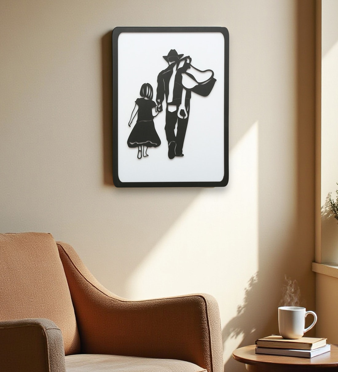 Engineering Wood Laser Cut Cowboy With His Daughter Wall Art In Black & White Finish