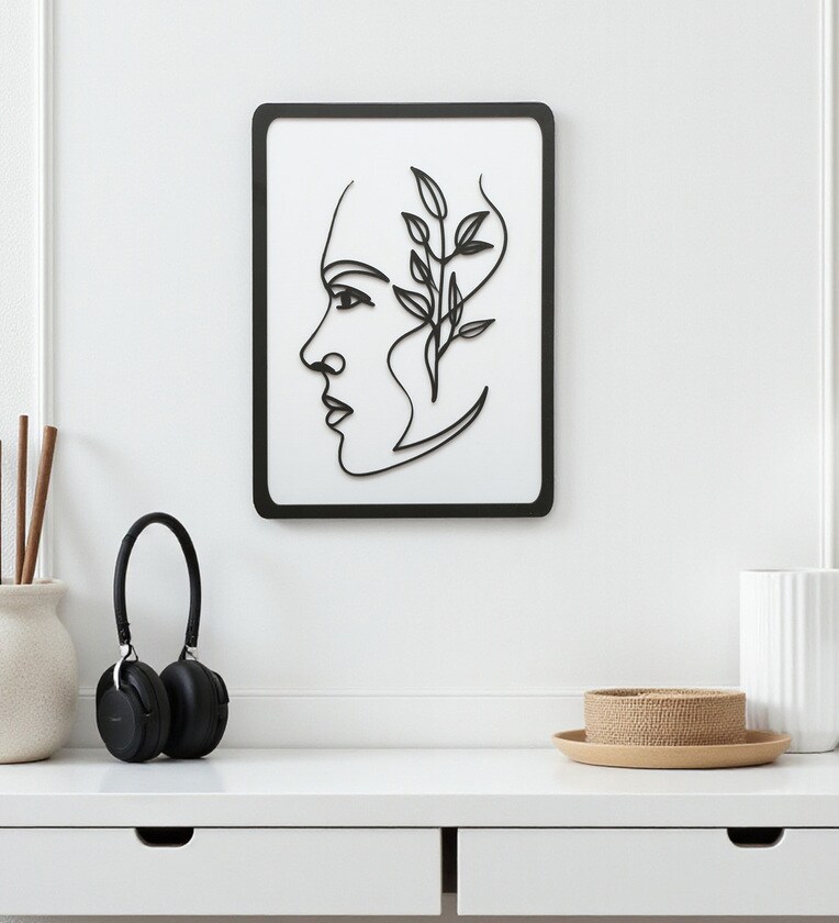 Engineering Wood Laser Cut Human Tree Face Design Wall Art in Black & White Finish