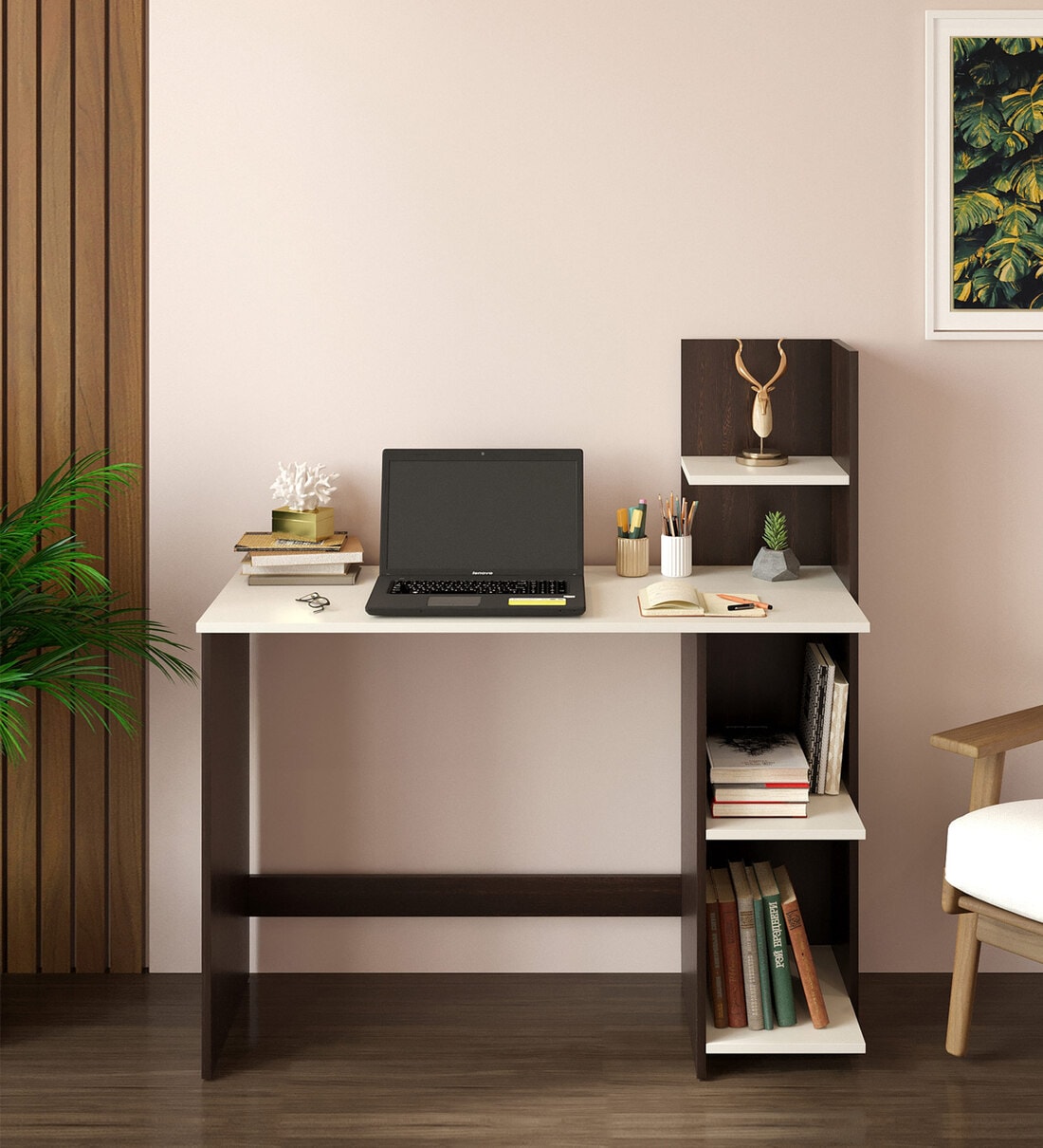 Your new office space awaits with the desk. This computer workstation table provides an open shelf for easily accessible items with plenty of storage to assist with office clutter. You can set up a productive work or study from the home environment with this Desk.