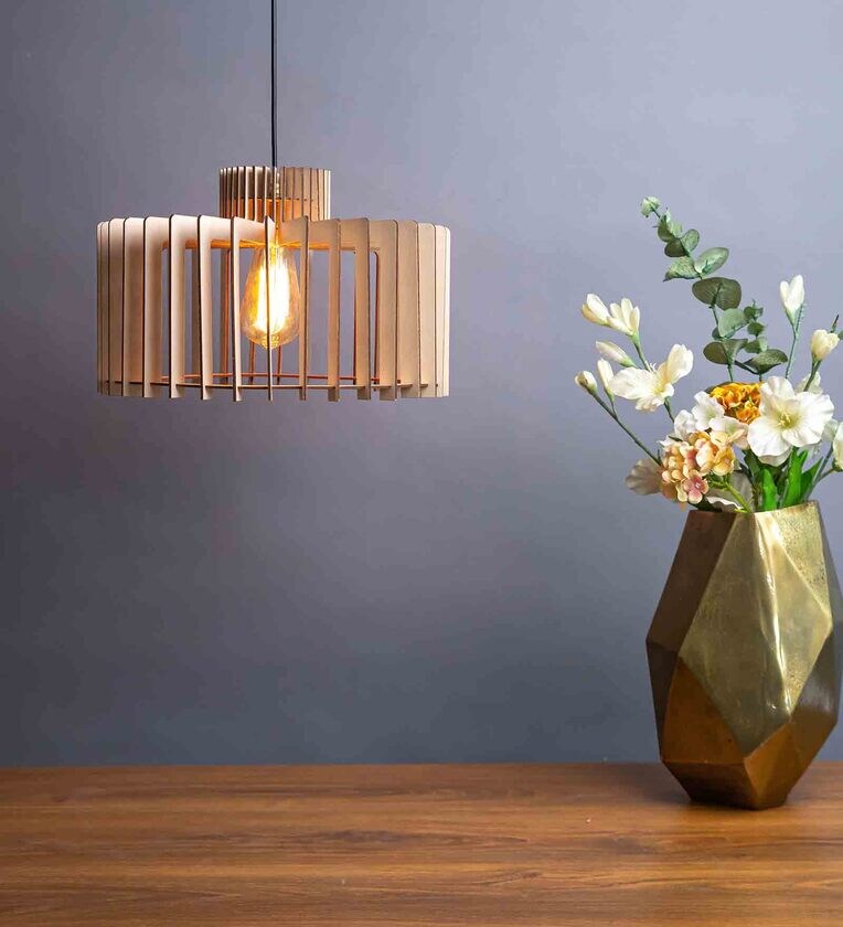 Light up the space with this one of a kind pendant light. The geometric form and light in Birch Wood finish will be a great addition to any place. This lamp has a lovely classic shape and a perfect subtle glow.This will definitely impress anyone that sees it.