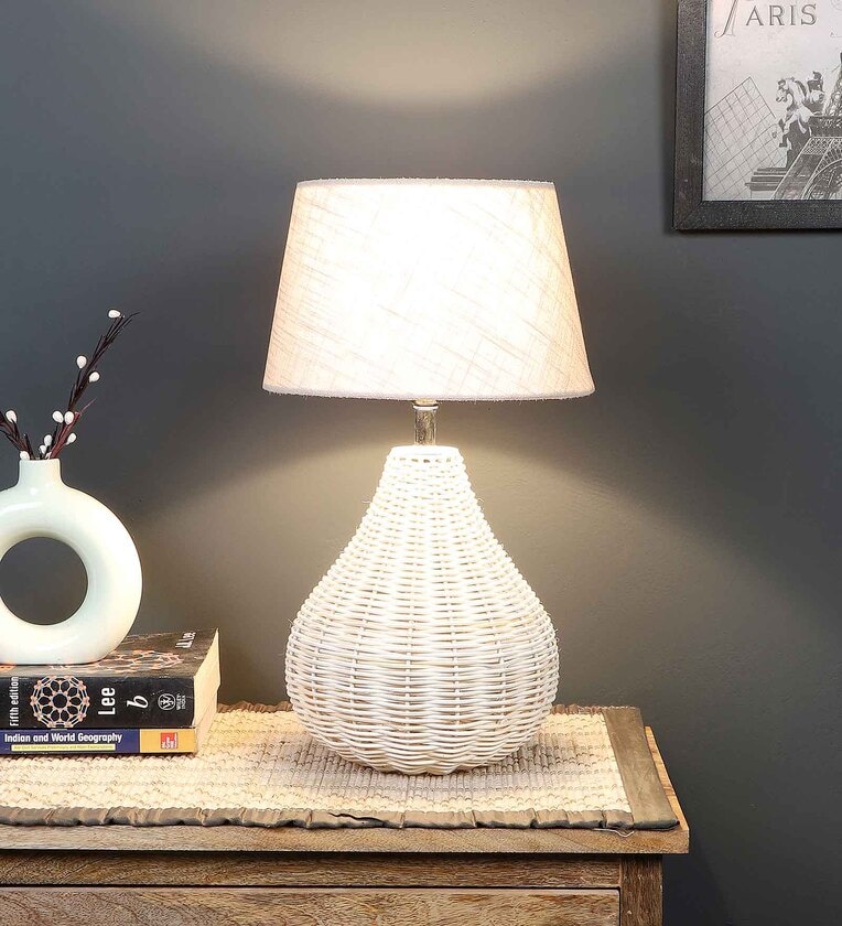 TABLE LAMP Fabric White White 10X10X5 cmE-27 & 2-PIN 0-40 WATT ON/OF