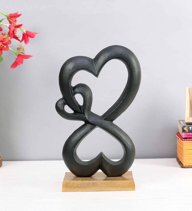 Family Heart Black And Gold Base Raw Finish Small Sculpture