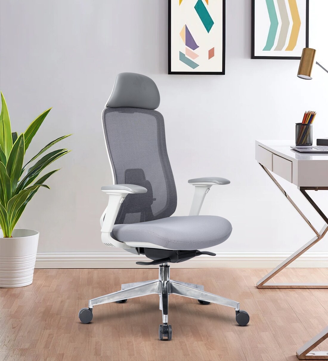 Fedo Breathable Mesh Ergonomic Chair In Grey Colour