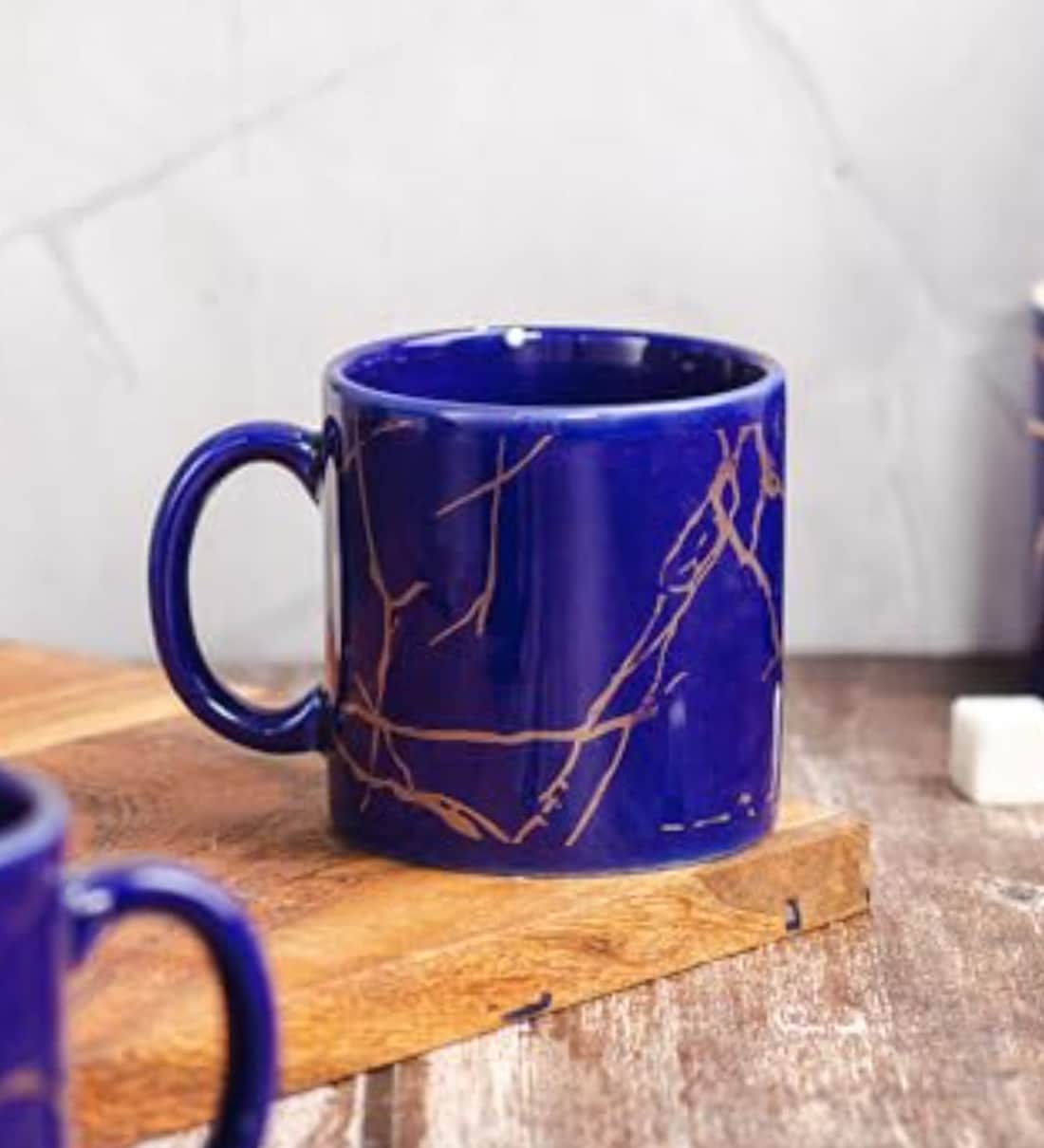 Femora 22k Liquid Marble Gold Design Ceramic Coffee Mug, Tea cups, Chip Resistant, 180 ML, Pack of 2, Royal Blue