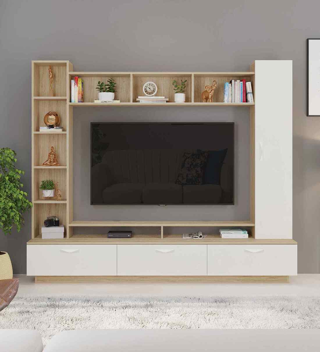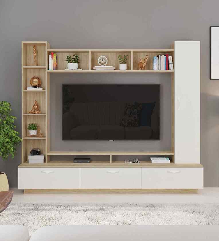Made of Particle Board (High grade prelam engineering wood with natural wood grain finish) Color - European Oak & White, Floor Standing TV Unit with Multiple Storage options, TV Size : Upto 60 Inches Assembly Required: Don t worry, the seller provides free installation. Our team will assemble the product for you after delivery, so you can sit back and relax Product Warranty :: 2 years warranty on manufacturing defects.