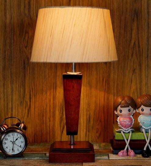 Fergal Beige Fabric Shade Night Lamp With Wood Base