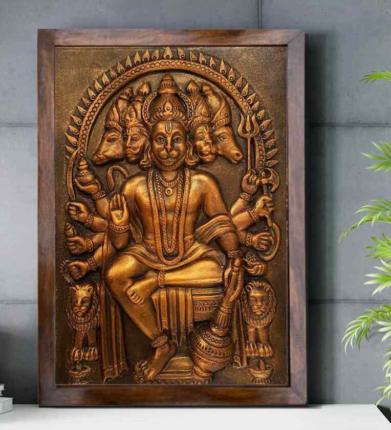 Panchmukhi Hanuman is a depiction of Lord Hanuman with five faces, each representing a different form of the divine. The five faces are Lord Hanuman, Lord Narasimha, Lord Garuda, Lord Varaha, and Lord Hayagriva. It is believed to possess immense strength, knowledge, and wisdom. The five faces represent different aspects of the divine, and their combined power is believed to help overcome obstacles and bring success in life.