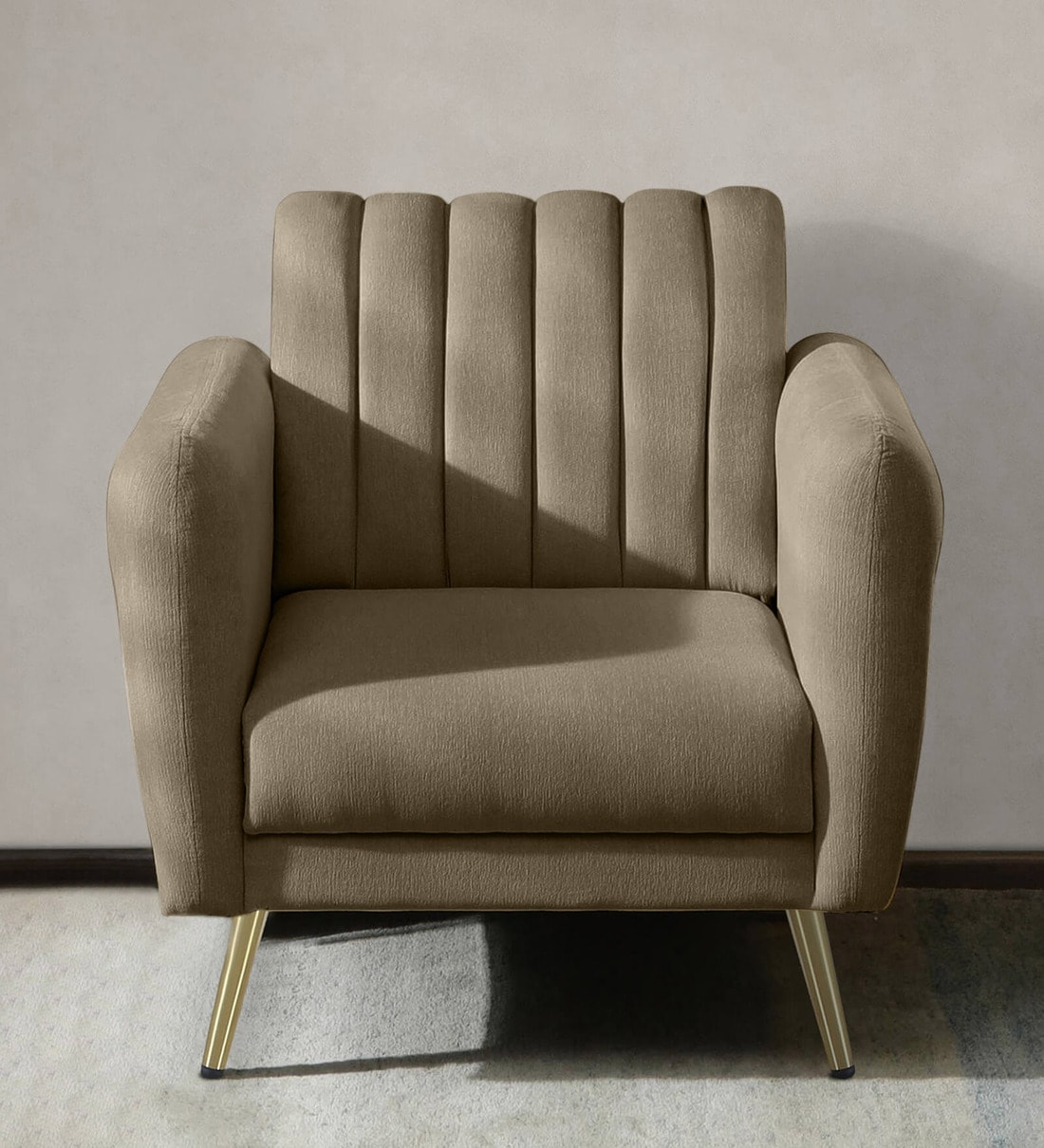 Fidel Chenille Fabric 1 Seater Sofa in Beige Colour