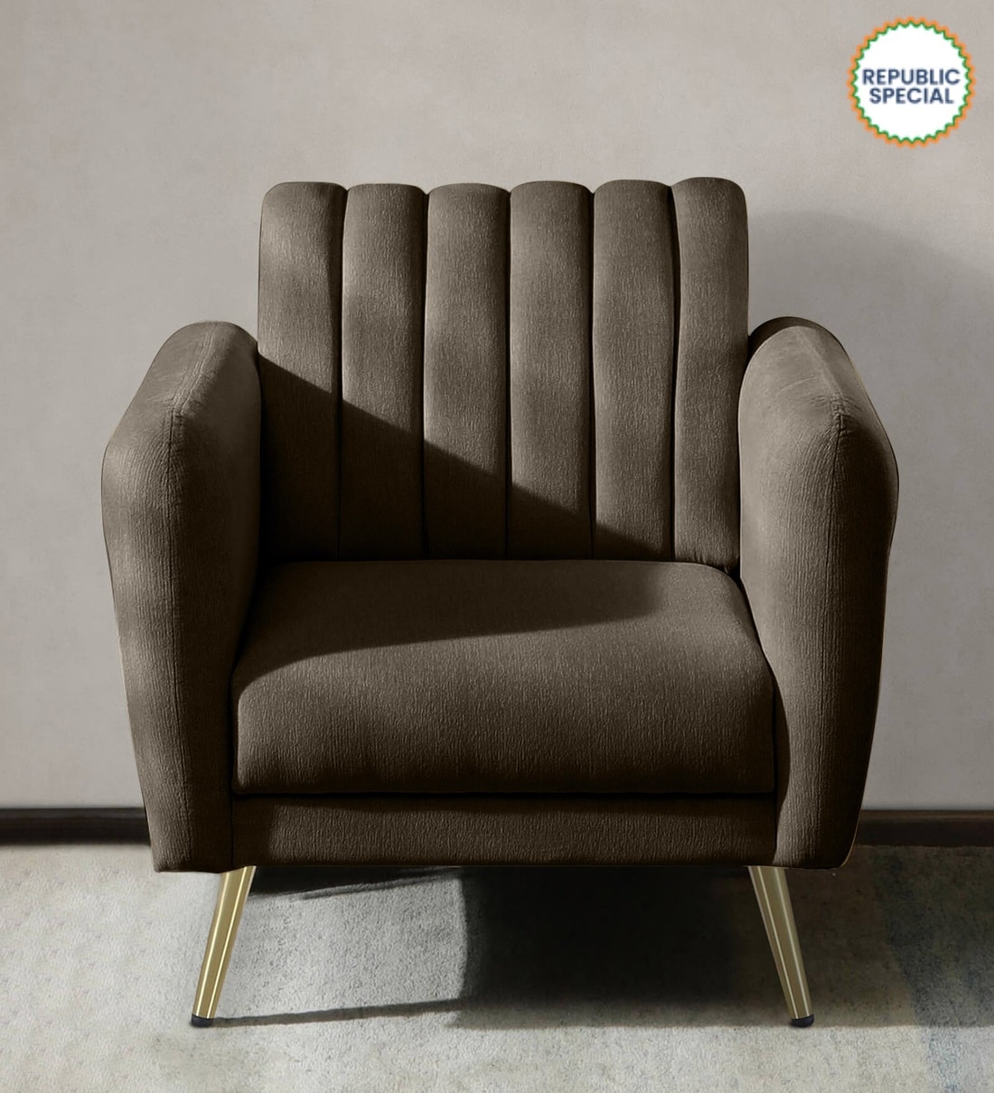 Fidel Chenille Fabric 1 Seater Sofa in Brown Colour