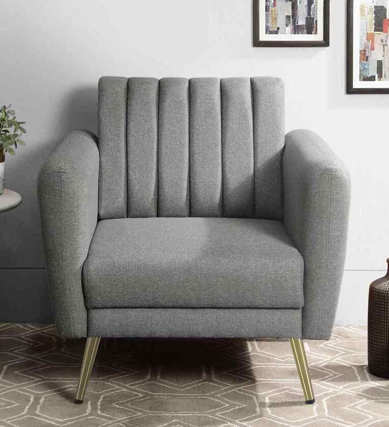 Fidel Chenille Fabric 1 Seater Sofa In Slate Grey Colour