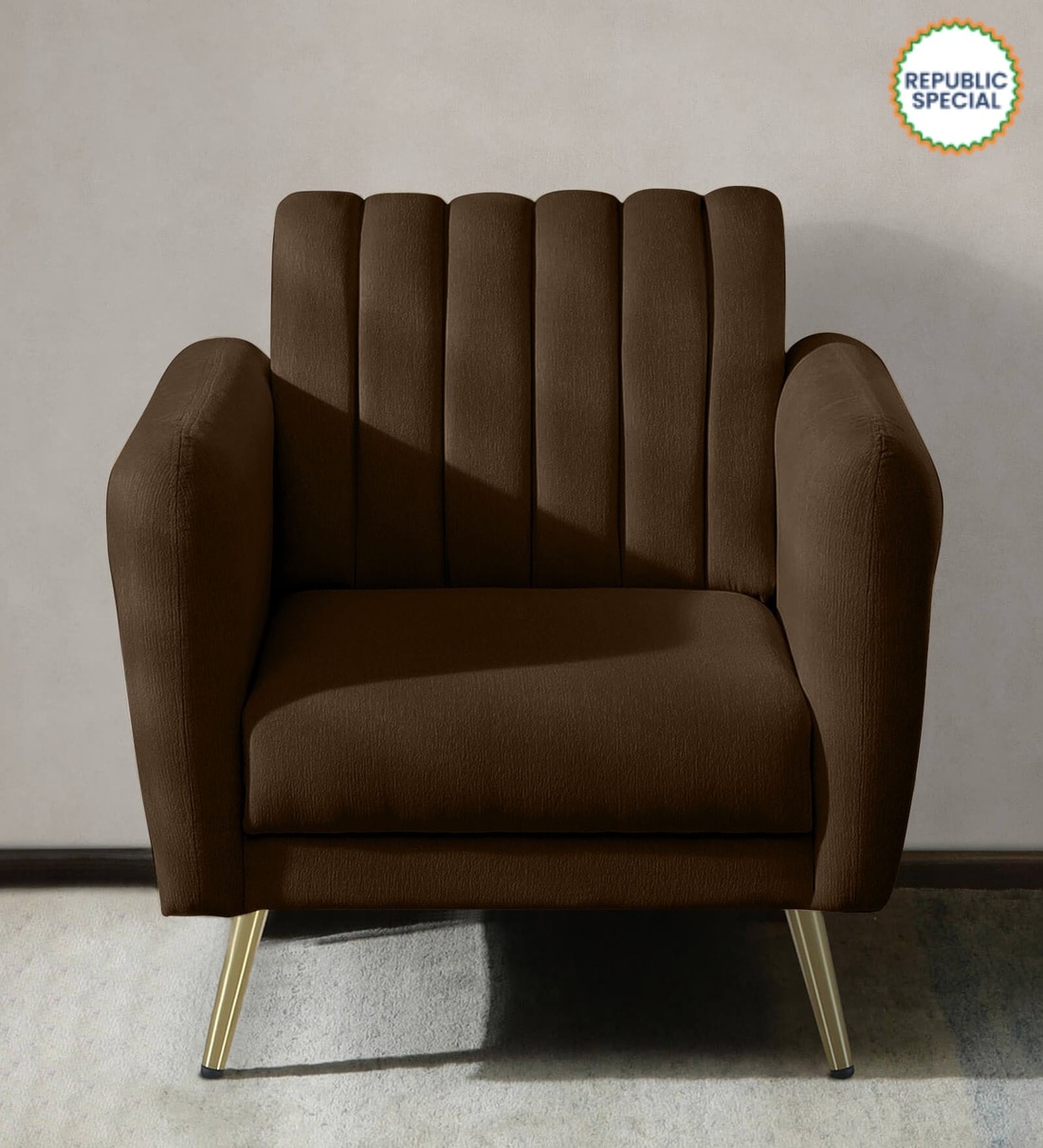 Fidel Velvet 1 Seater Sofa in Brown Colour