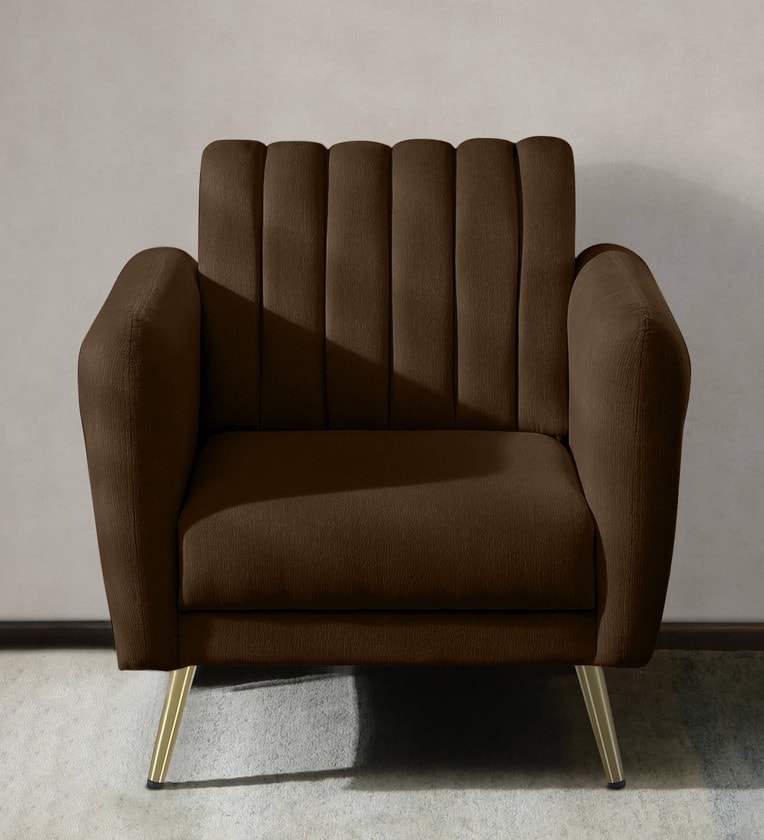 Fidel Velvet 1 Seater Sofa in Brown Colour