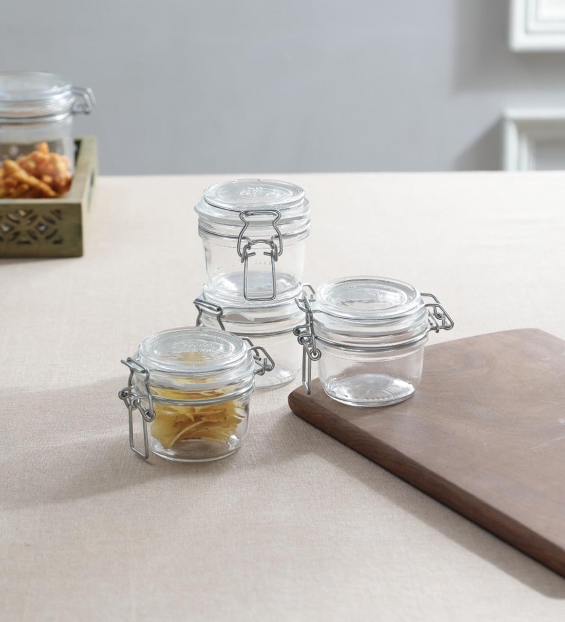 Fido Cylindrical 125 ml Transparent Glass (Set of 4) Jars and Containers