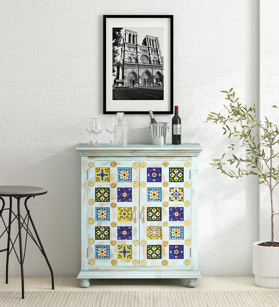 Finley Solid Wood Bar Cabinet In Distress Finish
