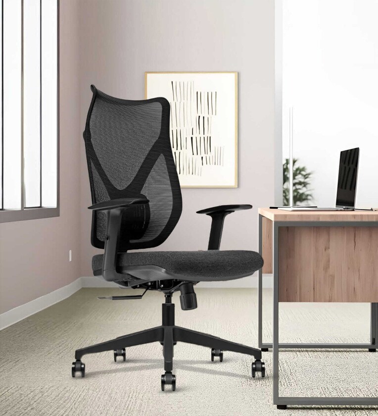 Fire Black High Back Mesh office chair features a sleek functional design with a Synchro tilt mechanism with single-locking feature and with lumbar support for enhanced comfort