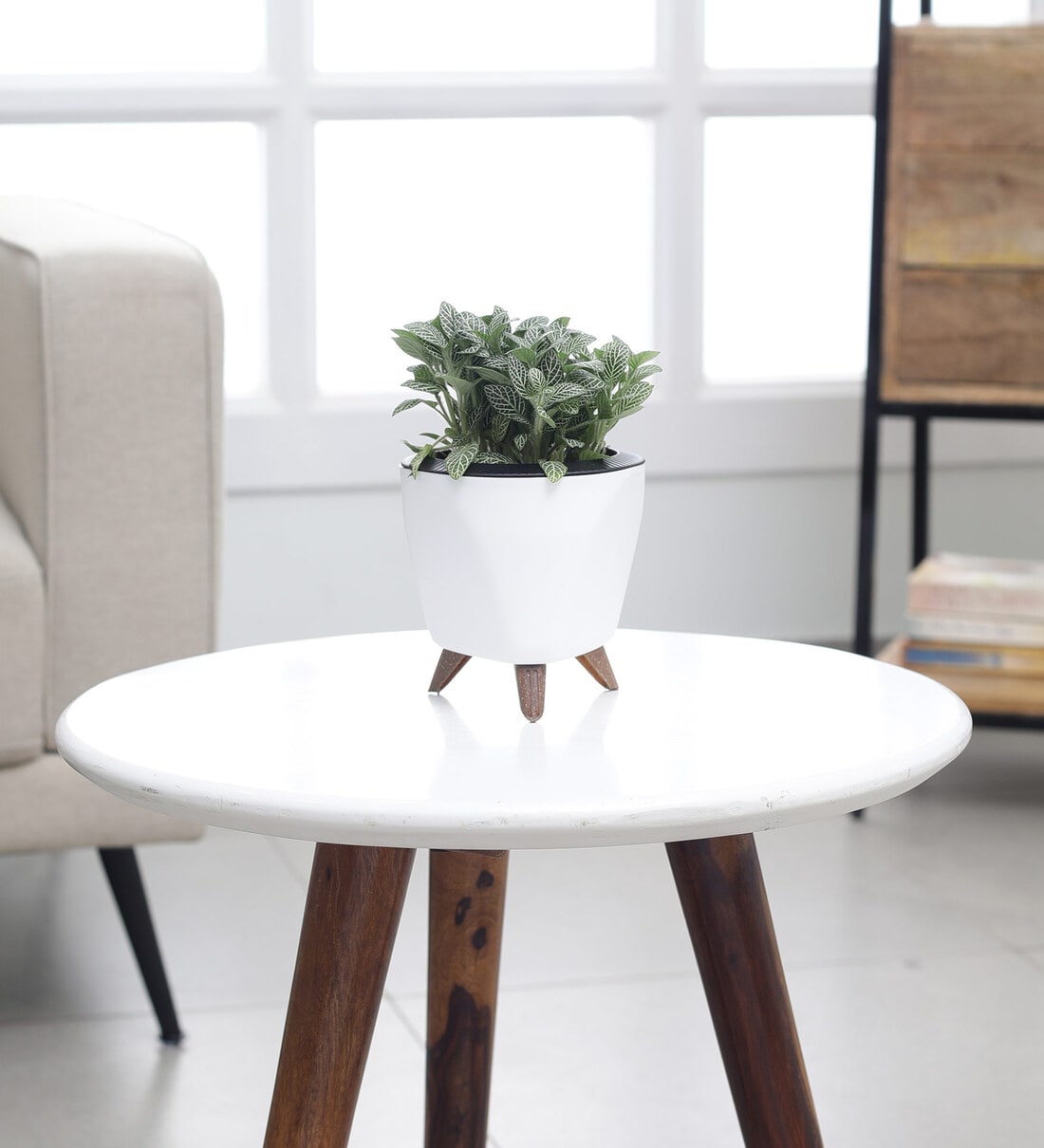 Fittonia Green Plant With Lagos White Plastic Pot