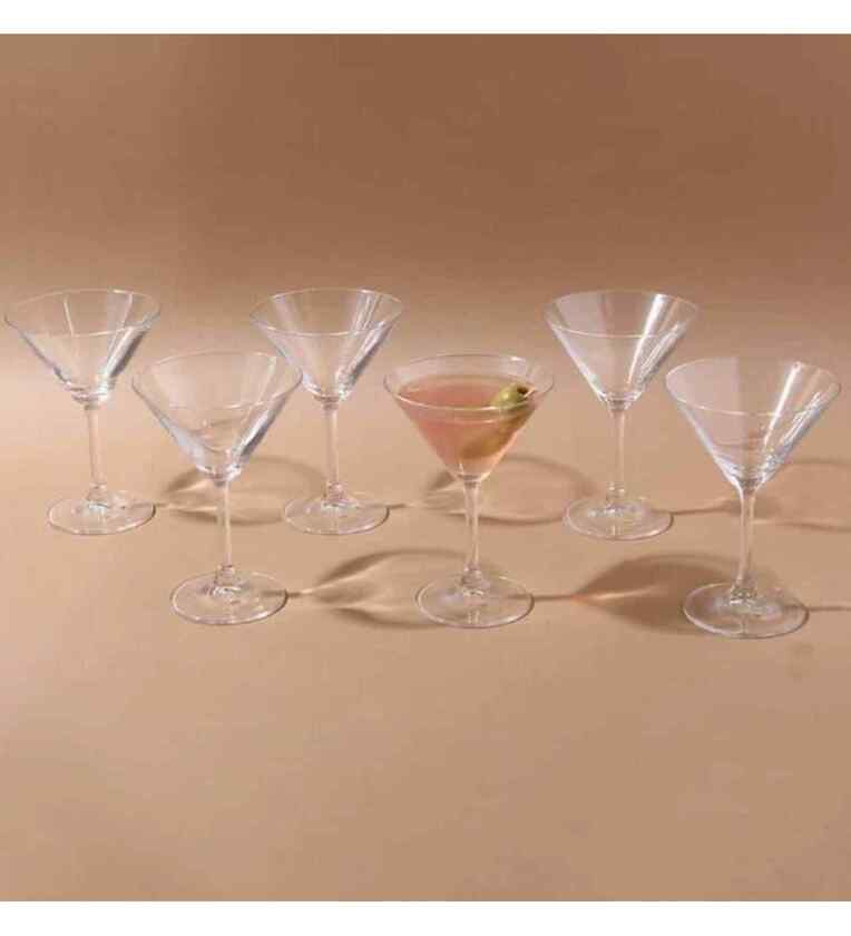Flamenco Set of 6 Transparent Crystal Lead Free Glass 270ml Martini Glasses