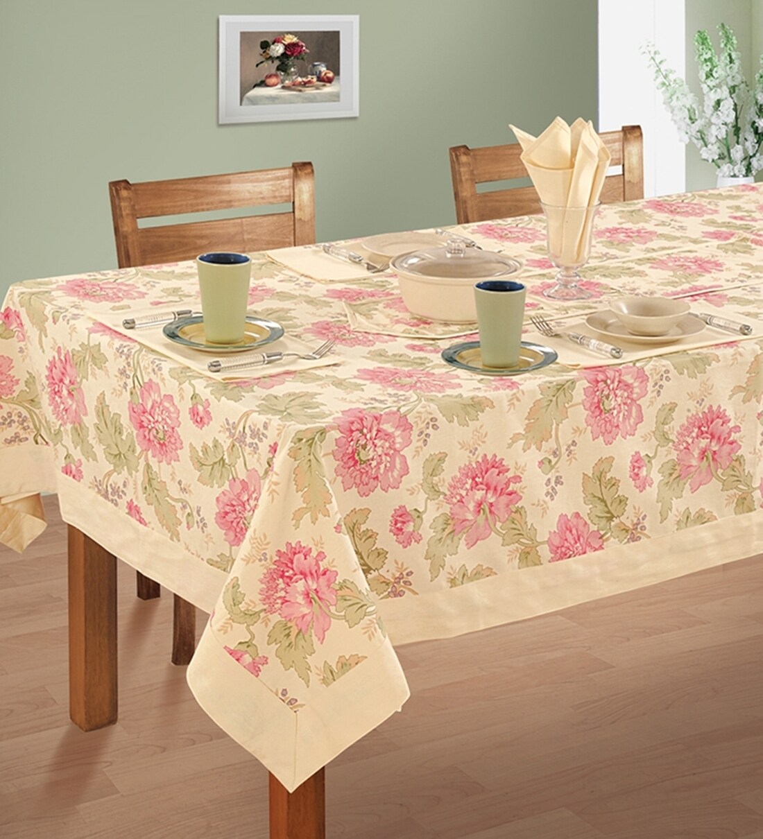 Floral (60x60) Pink & Cream Cotton Table Cloth