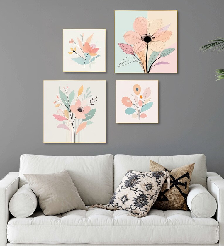 Floral Art Quartet Canvas Wall Painting Set of 4 Gold Frame