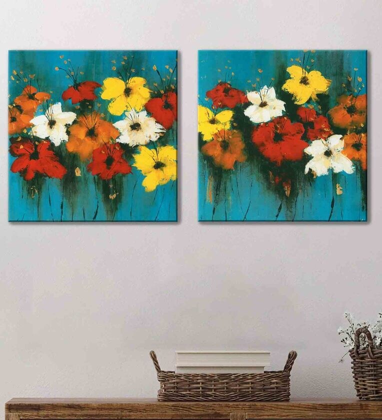 Floral Bunch Multicolour Synthetic Wood Framed Canvas Art Print