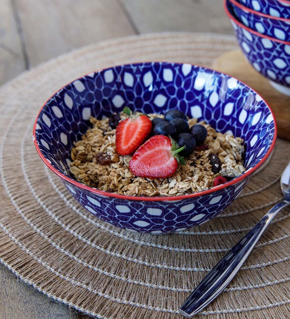 Floral Geometric 300ml Blue & White Stoneware Dinner Bowl