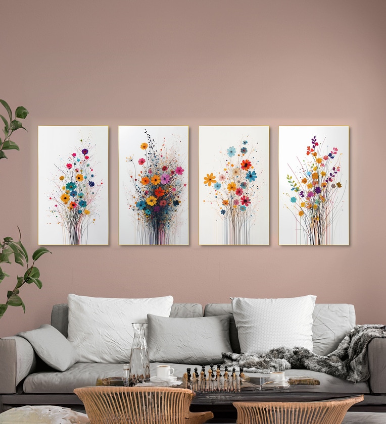 Floral Set of 4 Canvas Wall Painting Gold Frame