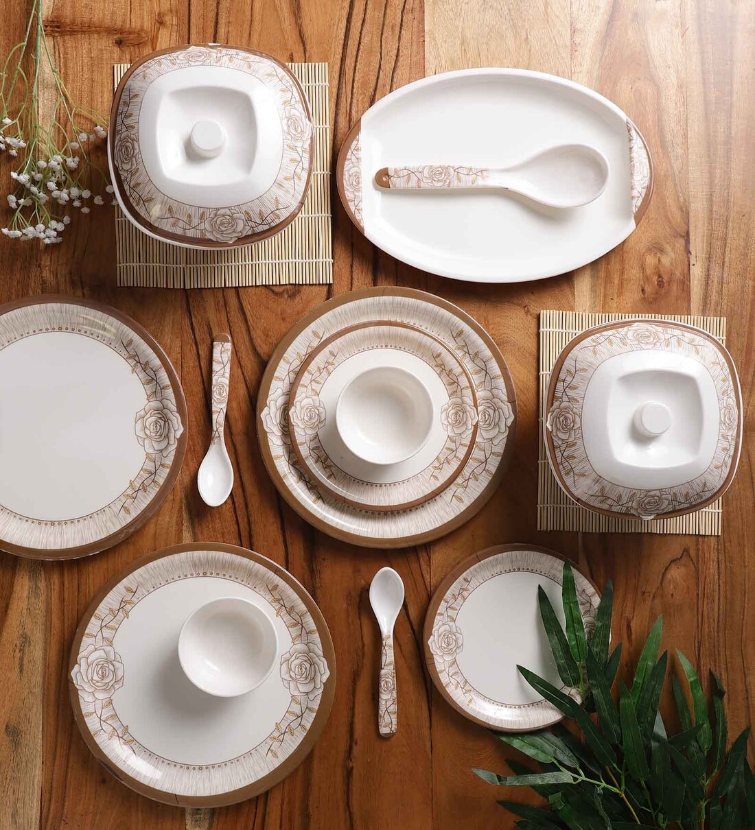 Floral White Melamine 41 Pcs Dinner Set