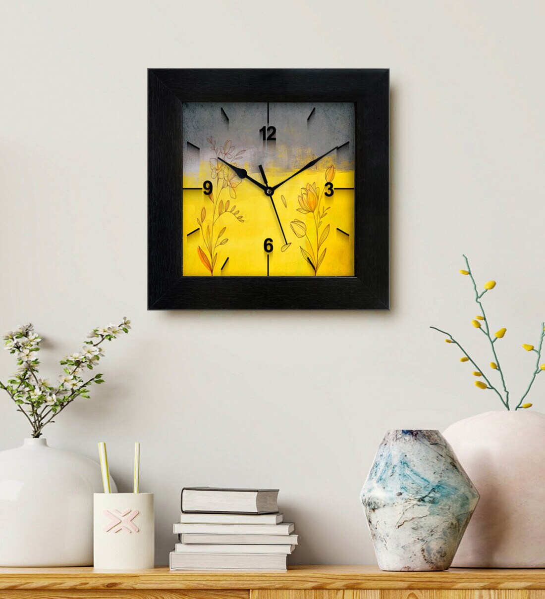 Floral Yellow Fiber Square Wall Clock