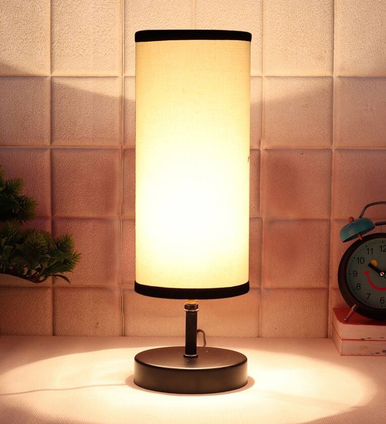 Florence White & Black Cottan Fabric Shade Table Lamp With Iron Base