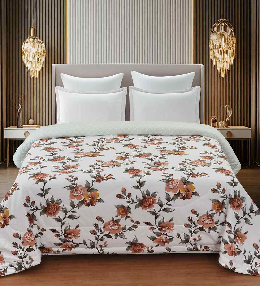 Florida 180 GSM Floral Reversible All Season AC Comforter / Blanket / Quilt (Cream, 220x240 CM)