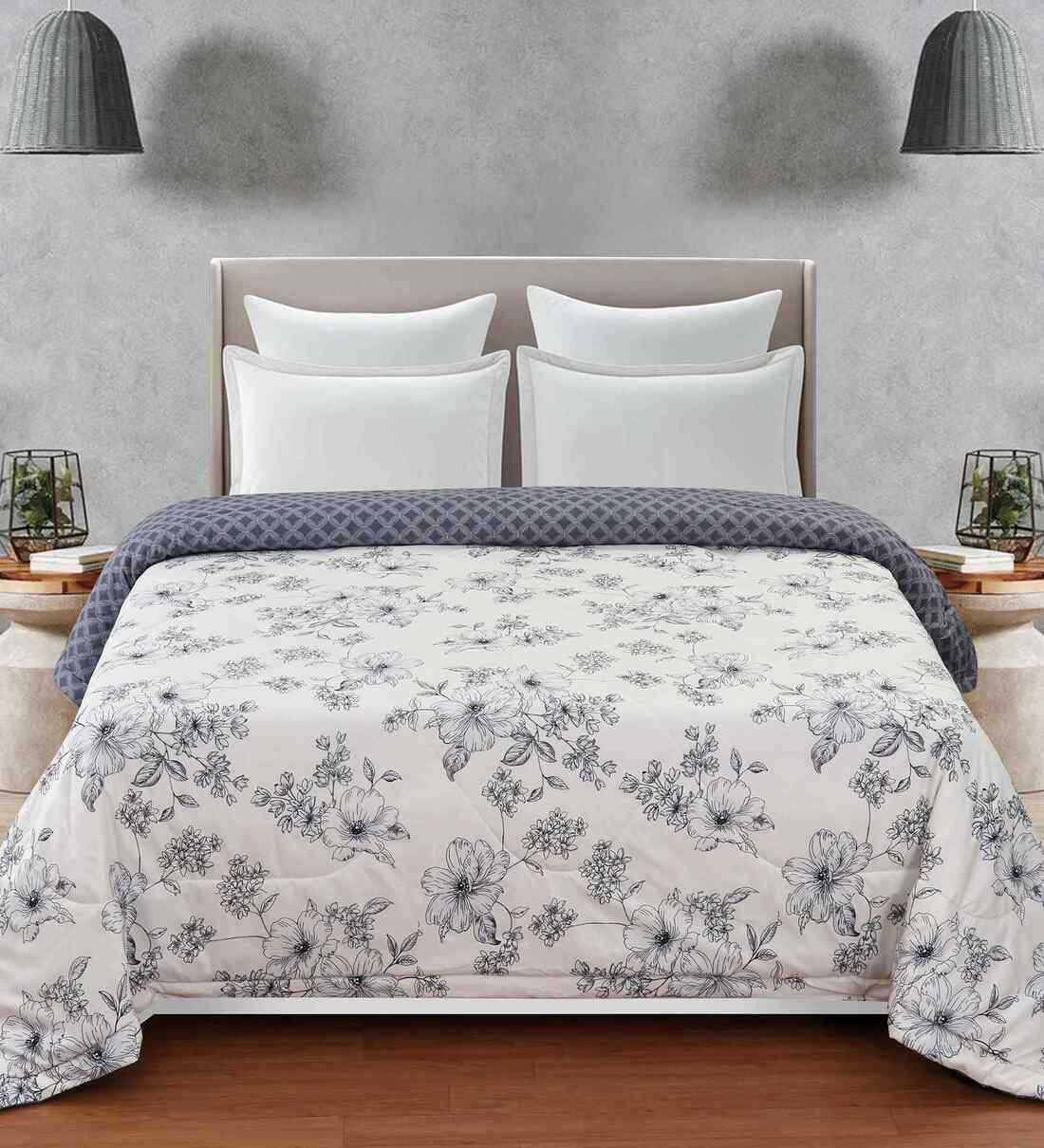 Florida 180 GSM Floral Reversible All Season AC Comforter / Blanket / Quilt (Pearl, 220x240 CM)