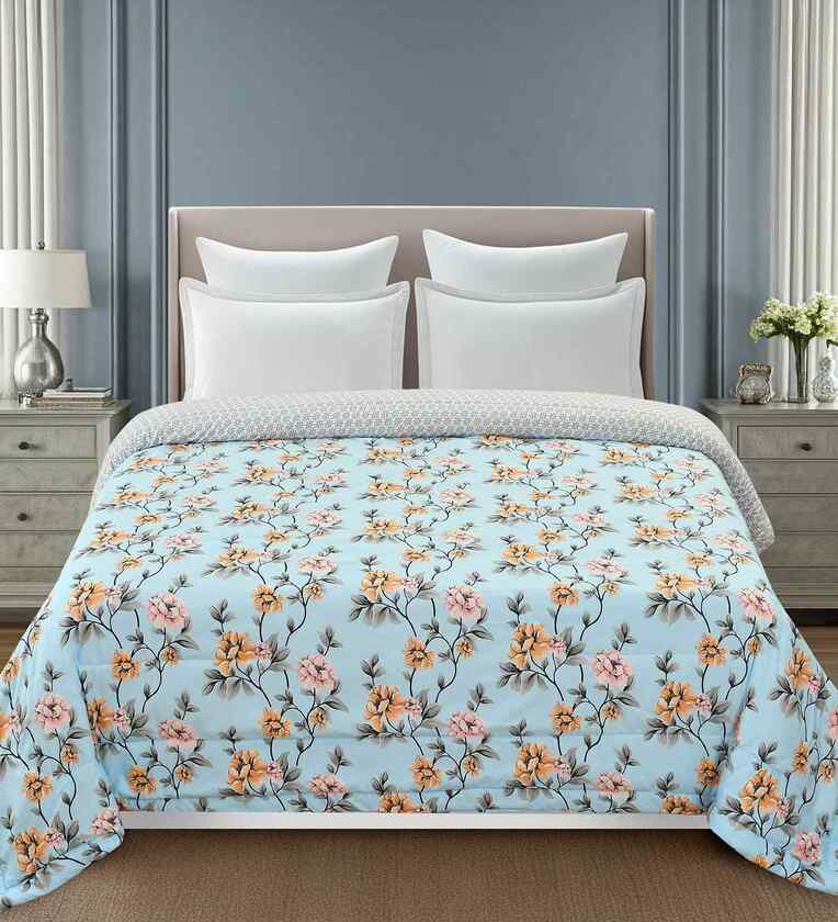 Florida 180 GSM Floral Reversible All Season AC Comforter / Blanket / Quilt (Sky Blue, 220x240 CM)