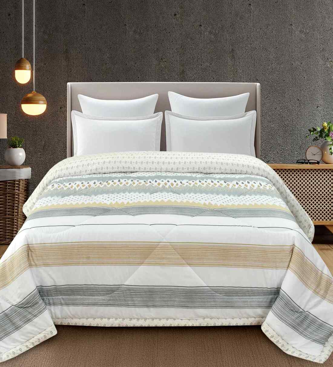 Florida 180 GSM Geometric Reversible All Season AC Comforter / Blanket / Quilt (Grey, 220x240 CM)