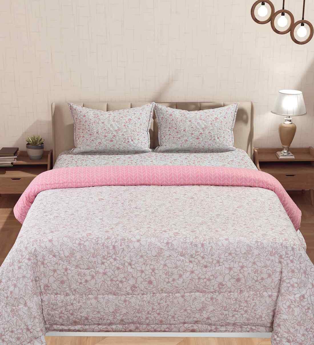 Florida Floral AC Comforter with King Bedsheet & 2 Pillow Covers | All Season | Reversible | Soft & Fluffy (White, 220x240 CM)