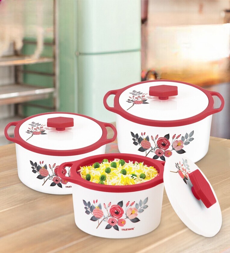 Florra Pink Plastic & Steel Thermoware Casserole (Set of 3)