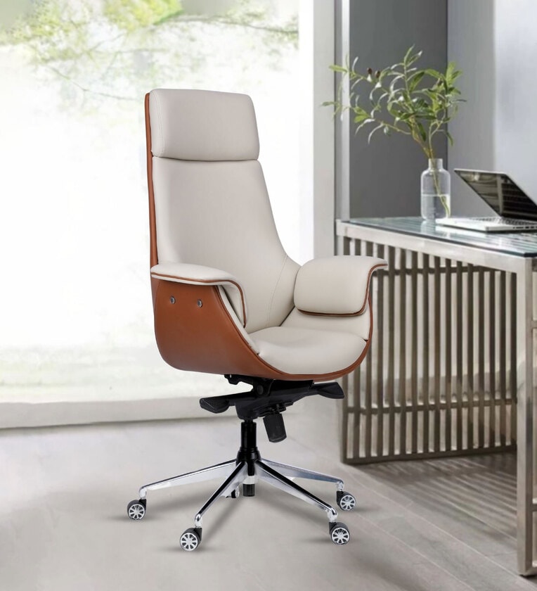 Flow Leatherette High Back Office Chair in Cream and Tan Colour