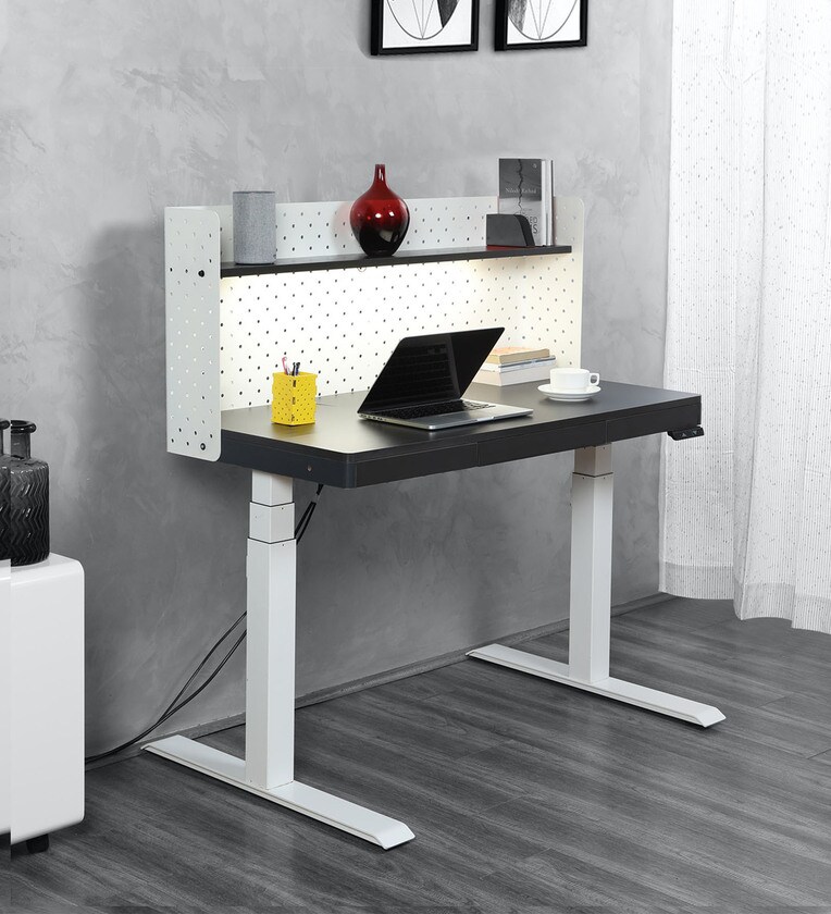 Height adjustable legs,minimum height : 24 inches (630mm) & maximum height: 48 inches (1280mm) Compact & Lightweight Contemporary Colour & Finishes Customisable Back Wall * Hidden Socket Box * Hidden Task Light * Accessory Shelf * Multipurpose Accessory panel