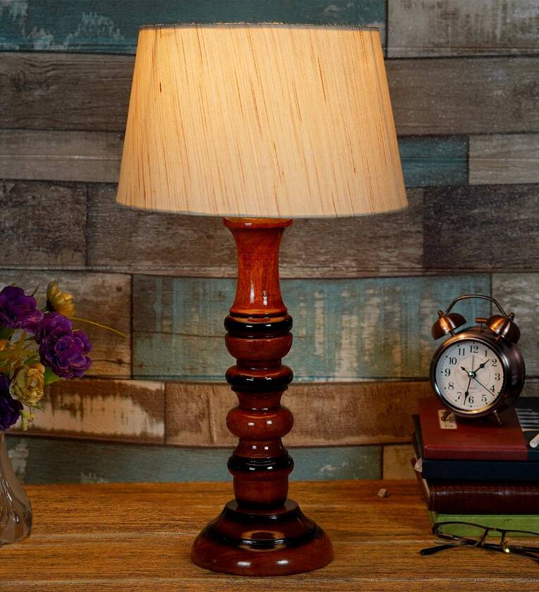 Fondi Beige Fabric Shade Night Lamp With Wood Base