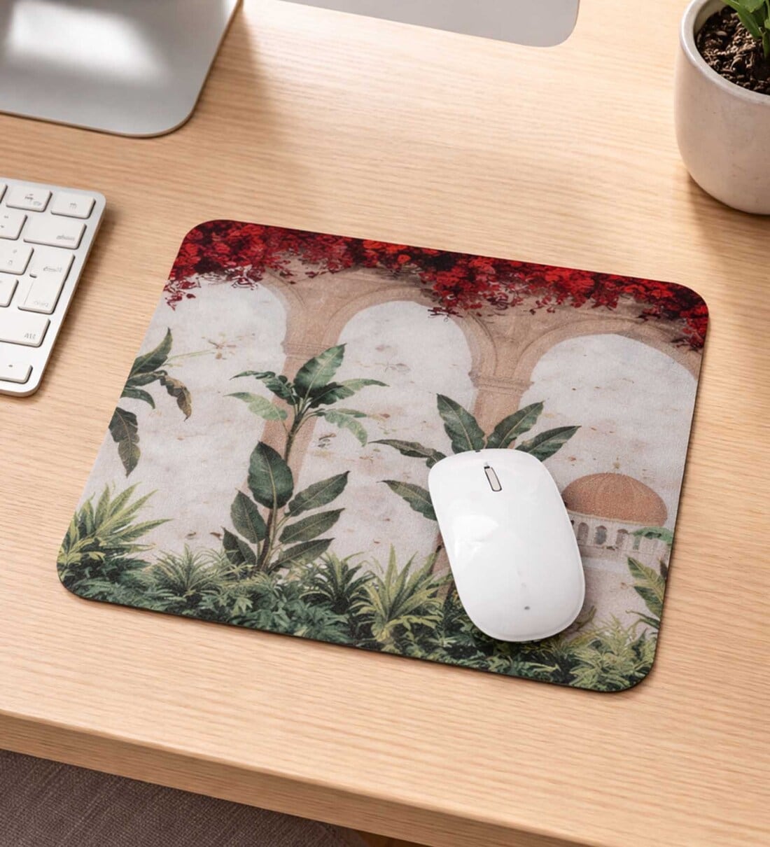 Fort Design with Green Leaves Printed Rectangle Mousepad