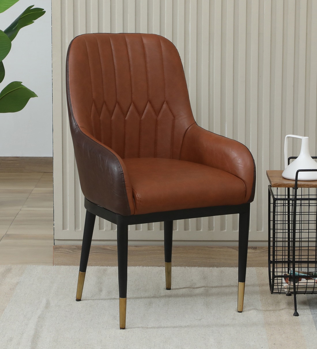 Leya Arm Chair In Brown Leatherette With Black Powder Coated Base