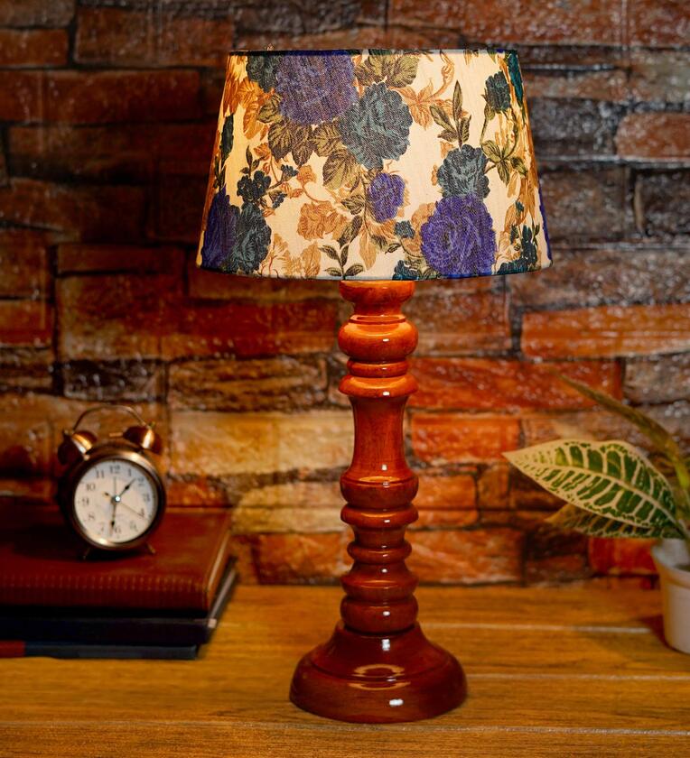 Frappe White & Blue Fabric Shade Night Lamp With Wood Base