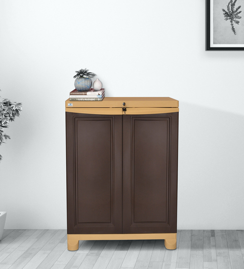 Freedom Plastic Kids 2 Door Small Wardrobe In Weather Brown & Biscuit Colour