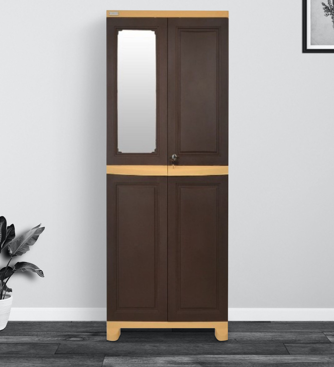 Several compartments with ample storage. Includes two separate double doors with a mirror. Made of a light virgin polymer. Weight Bearing capacity of each rack - 7 Kg.