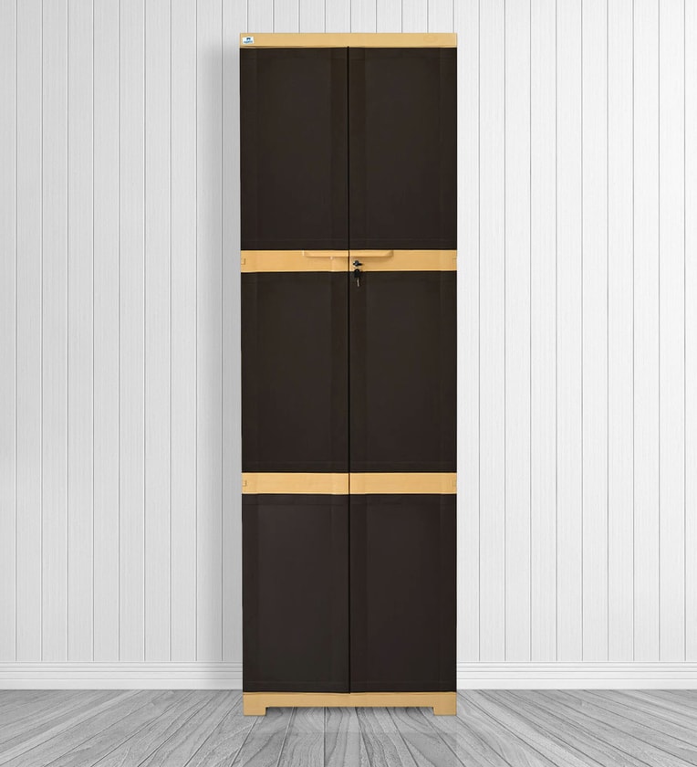Freedom Plastic Kids 3 Tier Wardrobe In Weather Brown & Biscuit Colour
