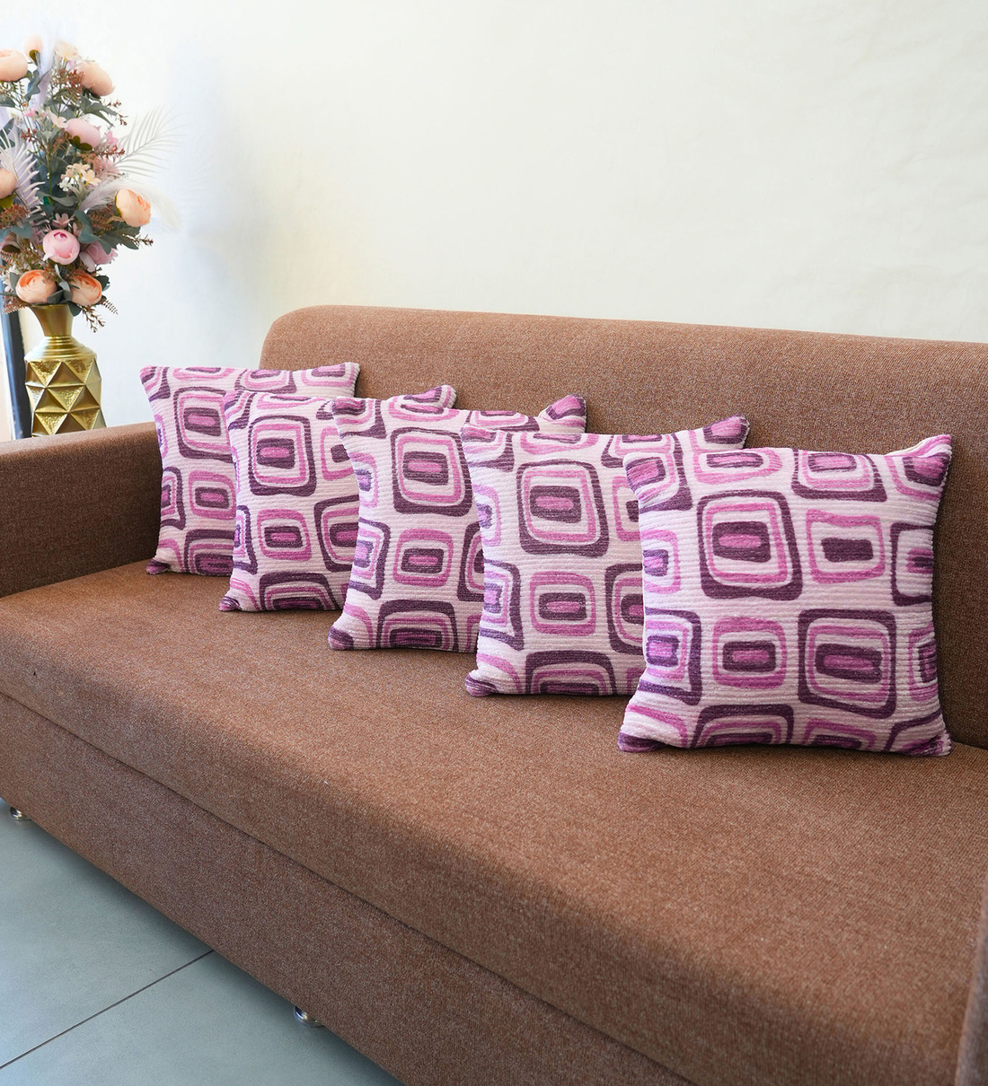 Fuchsia Polyester Geometric 18x18 inches Cushion Covers Set of 5