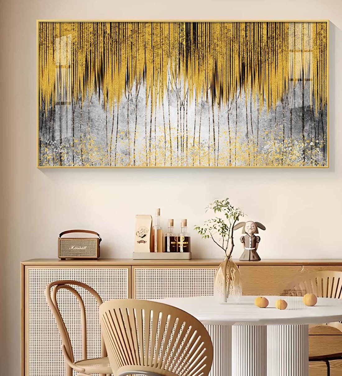 Functional Golden Line Glass Finish Horizontal Wall Art