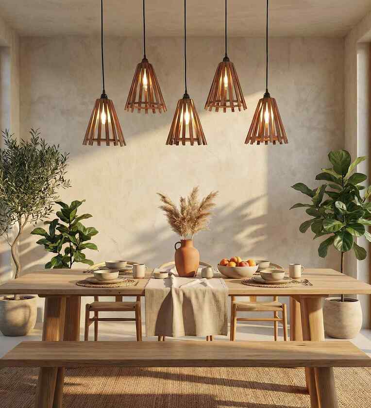 Funnel 5 Lights Brown Solid Wood Linear Chandelier Cluster Hanging Light